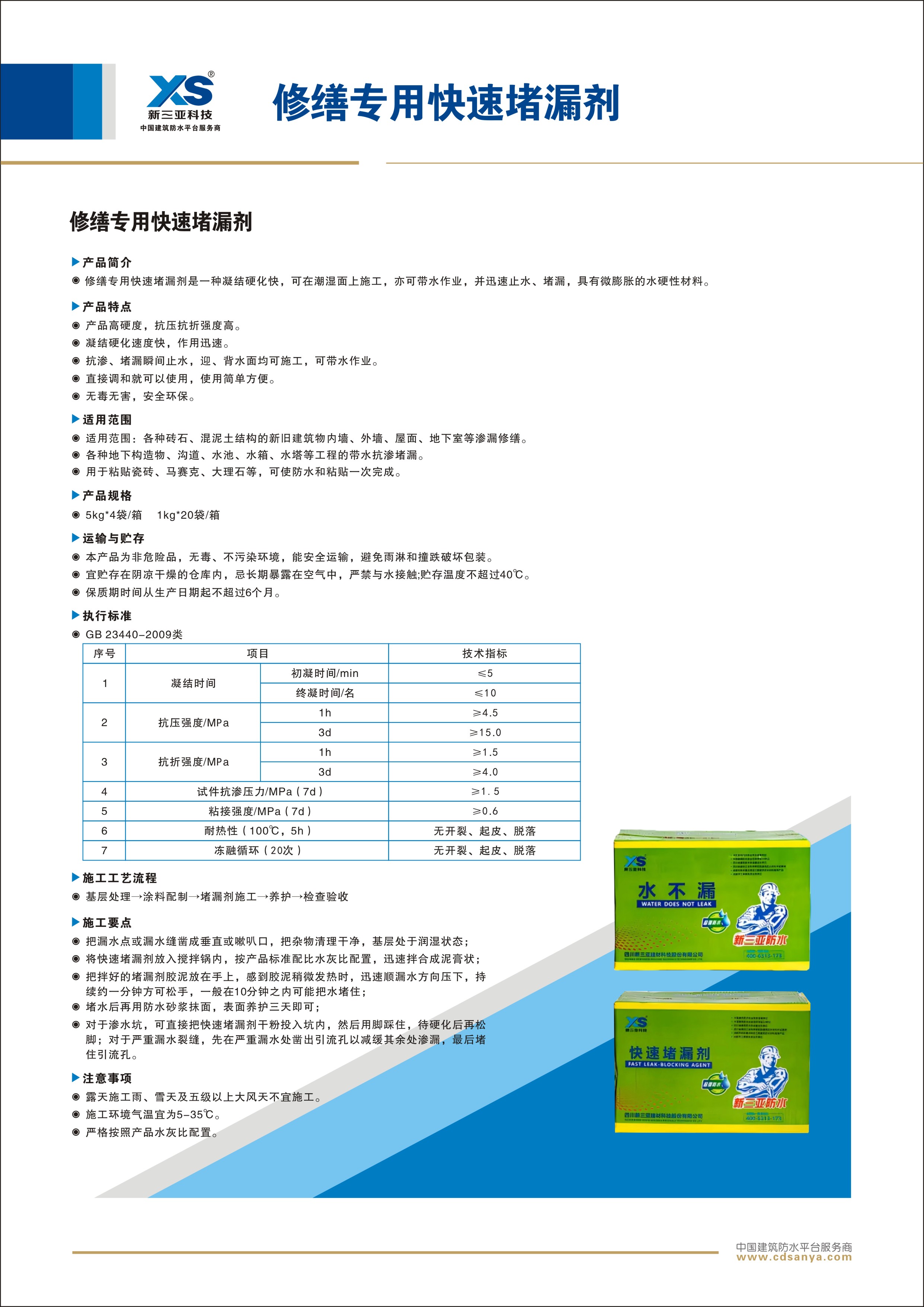 規格:水不漏(速凝型):20kg/件(5kg×4袋)